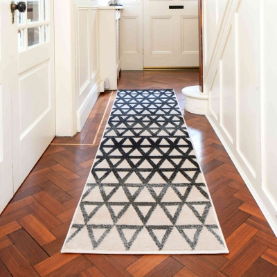 Modern Grey Geometric Triangle Hallway Runner Rug