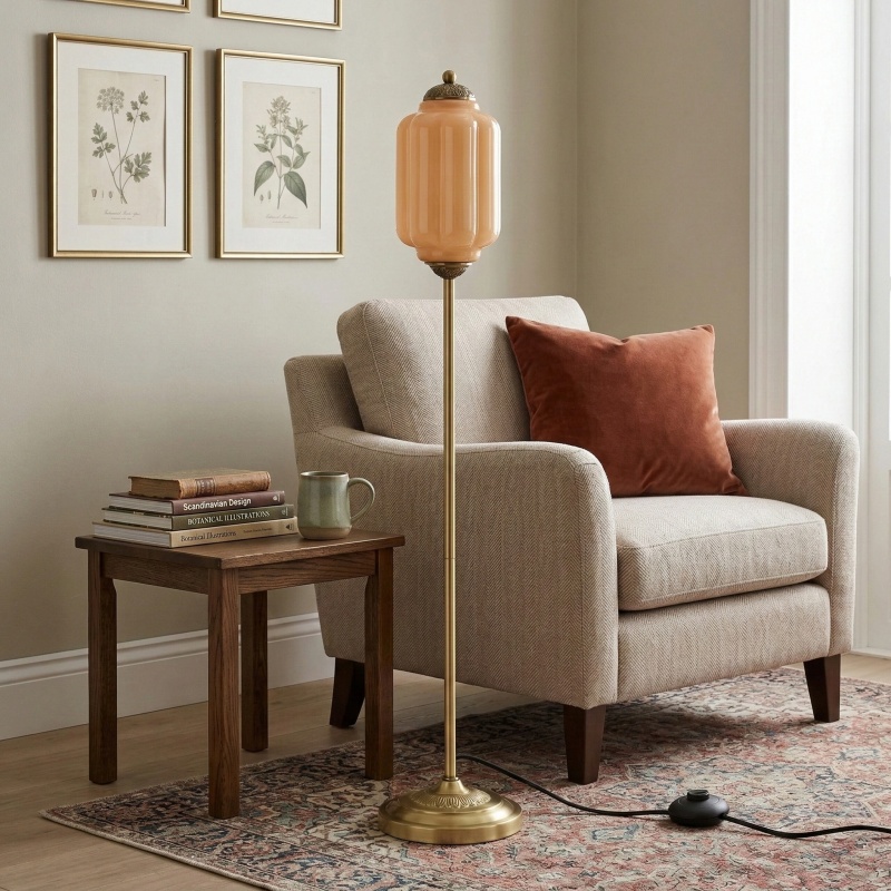 Inspired by organic pumpkin shapes, this textured glass floor lamp adds warmth and artistic charm. Its soft glow and retro feel create a cozy, inviting atmosphere.